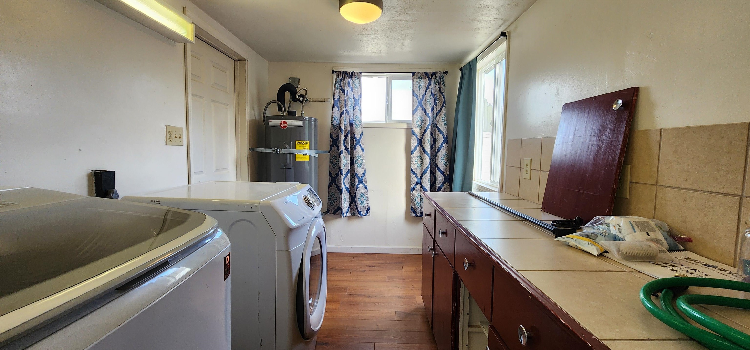 Bath-Master, Cabinets In Garage, Cabinets In Utilities, Din-Kit/Comb, Fan-Ceiling, Floors-Laminate, Floors-Tile, Hot Tub, Lighting-Recess, Utility Room, Walk-in Shower, Windows-Double