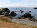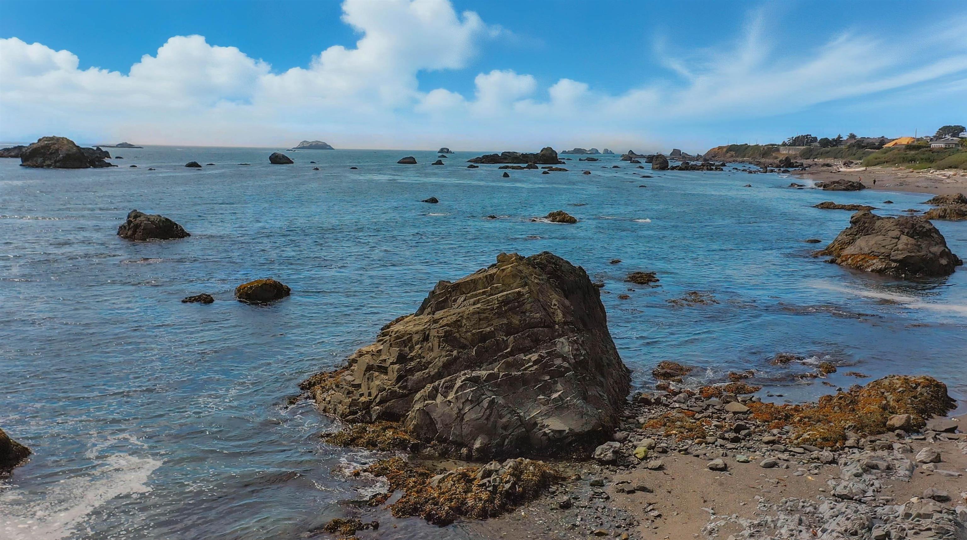 OCEANFRONT splendor!  Beach access with over half an acre parcel going to mean high tide. Relax and enjoy the ocean views, tide pools and sunsets!  5 bedrooms and 3 bathrooms originally built in 1900 but remodel includes hardwood floors, dual pane vinyl windows, new wiring and plumbing in 2010 and a modern kitchen with custom cabinets with sliding shelves and pantry.  Kitchen has solid surface counters, island with downdraft jennaire range, bar / prep sink and seating / eating bar.  Separate sink counter w/dishwasher, plus additional built-in  convection oven oven.  Breakfast area w/ views or coffee station...you choose.  Large living room, formal dining room and breakfast area all have panoramic ocean views.  Downstairs there are two large on-suites and a laundry closet.  Upstairs there are 3 bedrooms and one bath.  Also attic access for more storage. Views from the upstairs of the ocean and the harbor.  There is a monitor heater in the living room and working radiator heat throughout the house.  There is also a cellar waiting for you to develop into wine storage!  Newer detached double car garage with two doors & electric openers.  Cross fenced for private yard to keep the dog around.  Large rear patio off the dining room opens to huge grass yard open to the ocean, and views of the horizon and lighthouse.  You really must see this property to appreciate... high ceilings, modern amenities and priceless views with the ocean lapping at the edge of your lot!  virtual tour:   https://estate-photos.seehouseat.com/2348301 drone tour:   https://www.youtube.com/watch?v=AGtnhUDKc7A