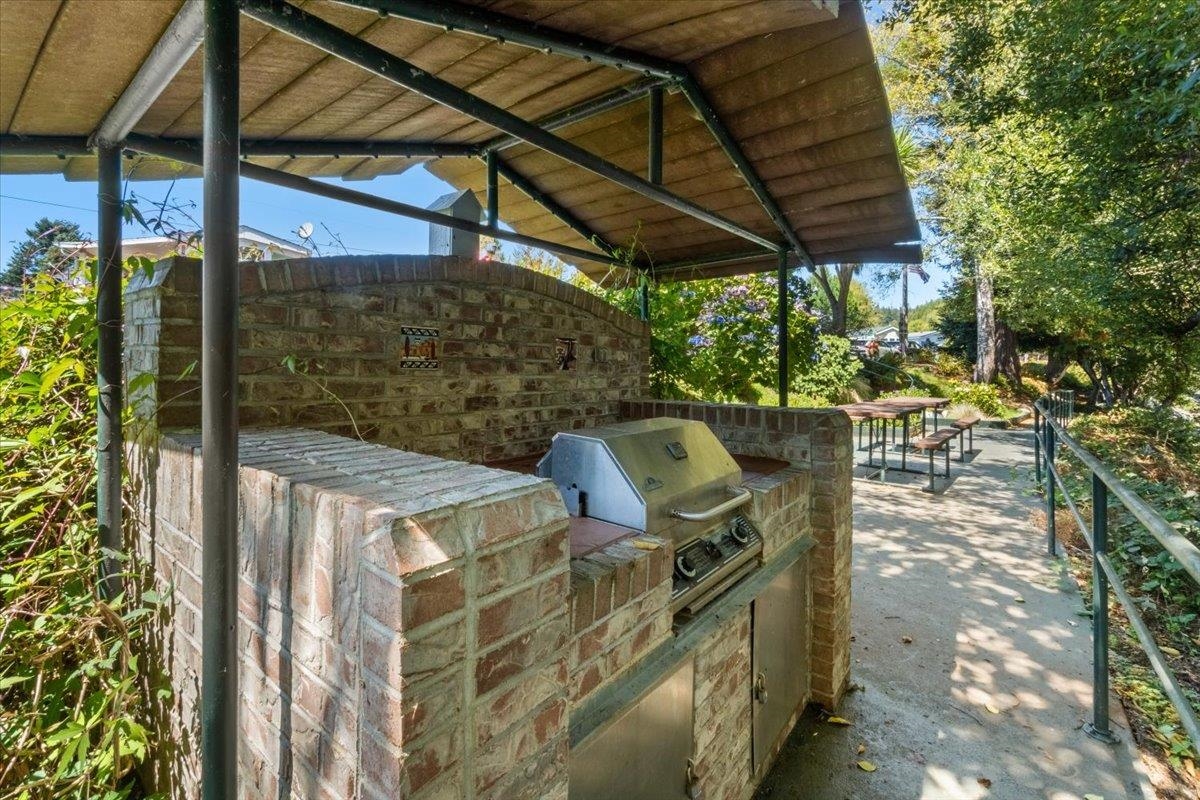 Charming 1-bedroom, 1-bathroom home located in Rowdy Creek Mobile Home Park, a peaceful 55+ community in Smith River. This 396 sq.ft. home is situated at the end of the road with stunning views of Rowdy Creek and access to a beautifully maintained outdoor area featuring picnic tables, benches, a garden, and a brick barbecue station. Interior highlights include an L-shaped kitchen with vintage charm, a brand new propane oven, a dining nook with floral accent wall, and a bright living room with sliding glass door access to the covered deck. The bedroom offers brand new carpet, built-in cabinetry, and custom storage nooks. Abundant natural light enhances the home’s cozy yet open feel. Space rent is $475/month and includes water, sewer, trash, and full access to a 9x11 detached shed—ideal for storage or hobbies. The park also provides an on-site laundry facility. Located just minutes from the Pacific Ocean, Jedediah Smith Redwoods State Park, and endless outdoor recreation. HOME IS BEING SOLD AS IS.