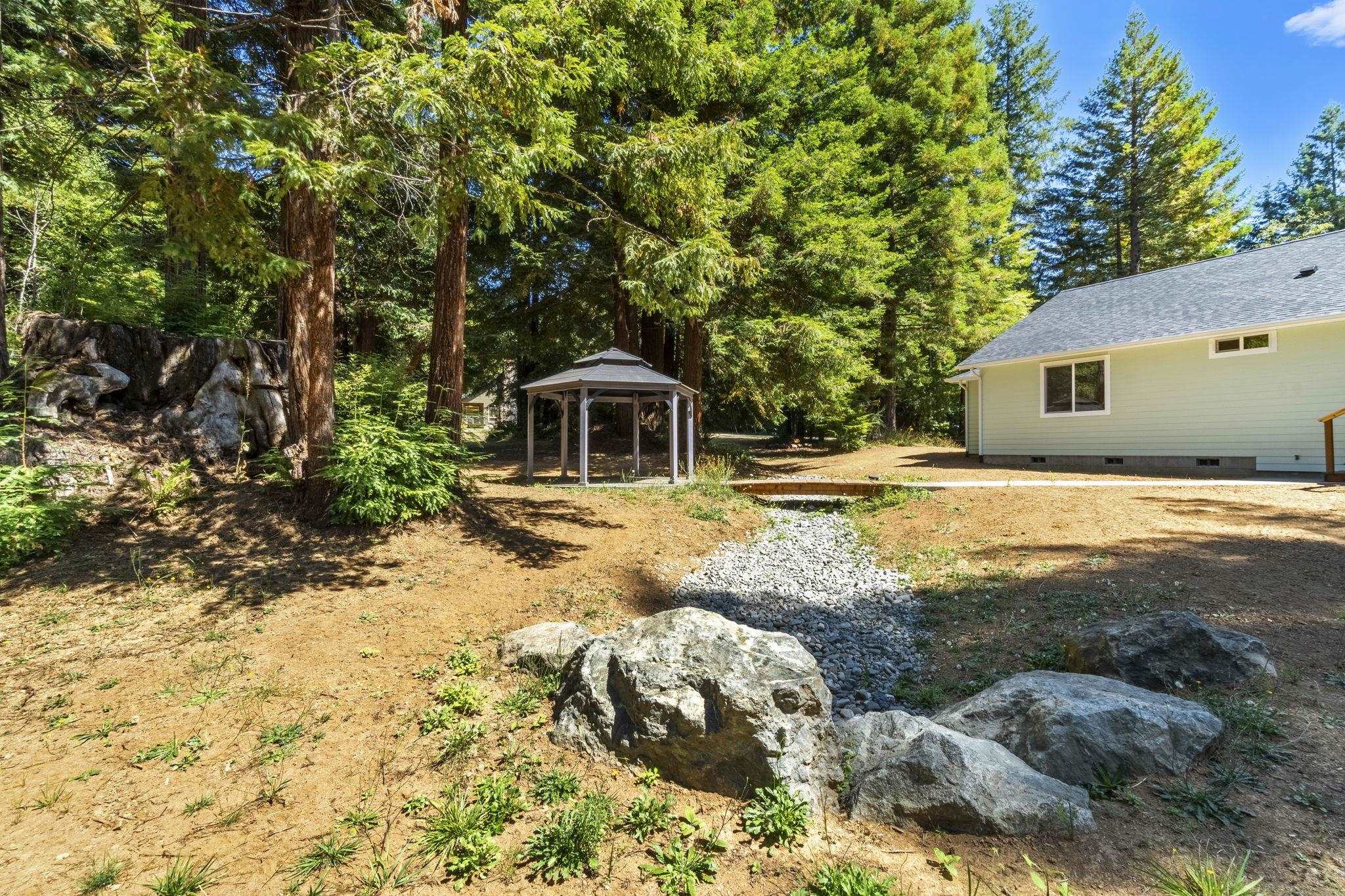 Welcome to Wisdom Tree! Just completed, this stunning Craftsman-style home is move-in ready. Wisdom Tree is nestled on a peaceful one-acre parcel in the coveted Bell Hole Loop neighborhood. Surrounded by majestic redwoods, the property offers a tranquil, park-like setting that perfectly complements the beauty and craftsmanship of this brand-new three-bedroom, two-bath home. Inside, you'll find a thoughtfully designed layout featuring an enlarged kitchen, spacious living room, and quality finishes throughout—ideal for comfortable living and easy entertaining. A double garage adds convenience and practicality to this already impressive home. What truly sets Wisdom Tree apart is its exceptional versatility: There is a charming gazebo, redwood footbridge, and a dedicated space with its own private driveway is ready for a future 1,200 sq ft Additional Dwelling Unit (ADU). Perfect for a guest house, rental income, multigenerational living, RV storage, workshop, or expansive garden area. Ideally located just minutes from the Smith River, Jedediah Smith Redwoods State Park, and the Del Norte Golf Course, this home offers the best of nature and recreation right outside your doorstep. Call today to schedule a private showing!