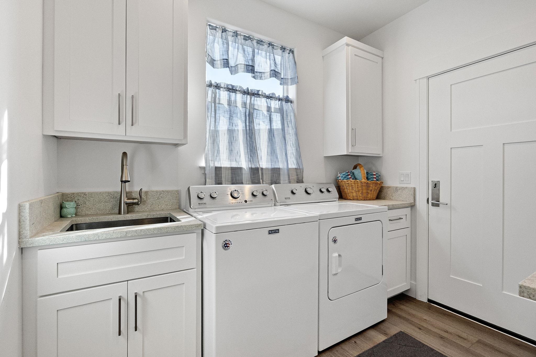 Bath-Master, Breakfast Bar, Cabinets In Utilities, Din-Kit/Comb, Extra Storage, Fan-Ceiling, Floors-Laminate, Garage Door Opener, Lighting-Recess, Pantry, Smoke Detector, Tub/Garden, Utility Room, Walk-in Closets, Walk-in Shower, Wet Bar, Windows-Vinyl