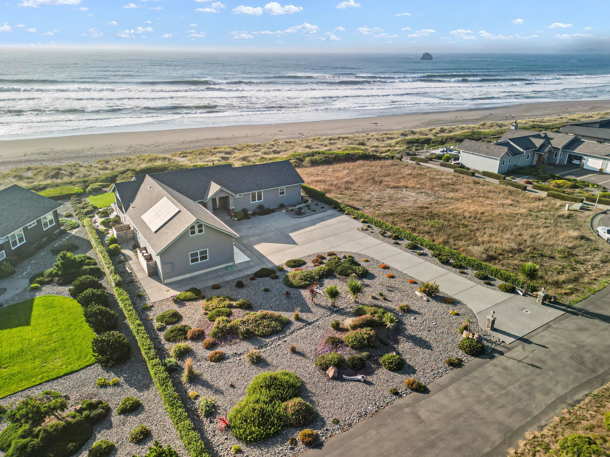 Stunning Oceanfront Beach House in Smith River, CA Welcome to your dream coastal retreat—an incredible oceanfront home located in the exclusive “The Beach†subdivision in Smith River. Situated on a spacious 0.71-acre lot, this custom-built masterpiece is just 4 years old and offers breathtaking, close-up views of Prince Island, Hunter Rock, and the dramatic Pacific coastline stretching into Oregon. With direct access to crashing waves and miles of sandy beach, this is coastal living at its finest. Designed with comfort and entertaining in mind, this oceanfront home was newly built in 2021 & proudly features 2,114 square feet of thoughtfully designed living space and plenty of room for guest parking. The covered front porch, accented with stacked stone pillars, is the perfect place to enjoy morning coffee while taking in serene mountain views to the east. On the ocean side, a large Trex deck, 523 sqft, overlooks a lush green lawn bordered by professionally designed, low-maintenance landscaping. Automatic sprinklers keep everything vibrant with ease, and a private pathway leads directly to the beach. A fire pit area offers a cozy spot to relax under the stars, and there’s even an enclosed outdoor shower for rinsing off after beach walks. Step inside to an open-concept interior flooded with natural light. The expansive living room has COREtec luxury vinyl flooring & features a full wall of floor-to-ceiling windows that showcase the ever-changing ocean views and nightly sunsets. A beautiful gas fireplace with a Port Orford Cedar mantle creates a cozy focal point. The gourmet kitchen is a chef’s delight, complete with leather-finish granite countertops, a deep farmhouse sink, stainless steel appliances, including a Wolf Gas Range/Oven (6-burner) with custom Port Orford Cedar range hood, refrigerator, dishwasher, and trash compactor, and an abundance of shaker-style cabinetry with soft-close doors and pull-out storage. A large breakfast bar with designer faux-stone pendant lighting offers the perfect gathering spot, while an adjacent wet bar with Port Orford Cedar countertop and a bar sink adds extra convenience for entertaining. Just off the dining area, a covered patio with a patio ceiling-heater provides a sheltered space for year-round barbequing. The home is equipped with some state-of-the-art smart features and a Rinnai Tankless water heater, ensuring modern comfort throughout. There are 3 spacious bedrooms and 2 and a half bathrooms. The primary suite offers spectacular white-water views and includes a large walk-in closet with a barn-style sliding door. The spa-inspired ensuite bathroom has ceramic tile flooring & features a massive walk-in shower with three shower heads, enclosed in thick glass, and finished with custom iridescent ceramic tile work. A freestanding deep soaking bathtub is perfectly positioned to take in the ocean view. The additional guest bedrooms are generously sized, with one offering a built-in desk, ideal for use as an office or den. The hallway bathroom with custom mirrors is equally impressive, with ceramic tile flooring & a beautiful combination tub and shower accented by more custom ceramic tile finishes. The large laundry room includes a deep sink, leather finish granite counters, and ample shaker-style cabinetry, all while offering ocean and island views. Connected to SimpliSafe Security. The attached three-car garage provides abundant space and includes a 420 sqft loft area accessible by pull-down stairs, perfect for extra storage. Concrete walkways, mature plantings, and a beautifully maintained exterior complete this exceptional property. With HOA dues of just $760 per year, a premium oceanfront setting, and an impressive list of high-end finishes, this home is a rare opportunity to enjoy luxury oceanfront living on the Northern California coast just 10 minutes from Brookings, OR. One Seller holds a CA Real Estate License. Shown by Appointment Only.