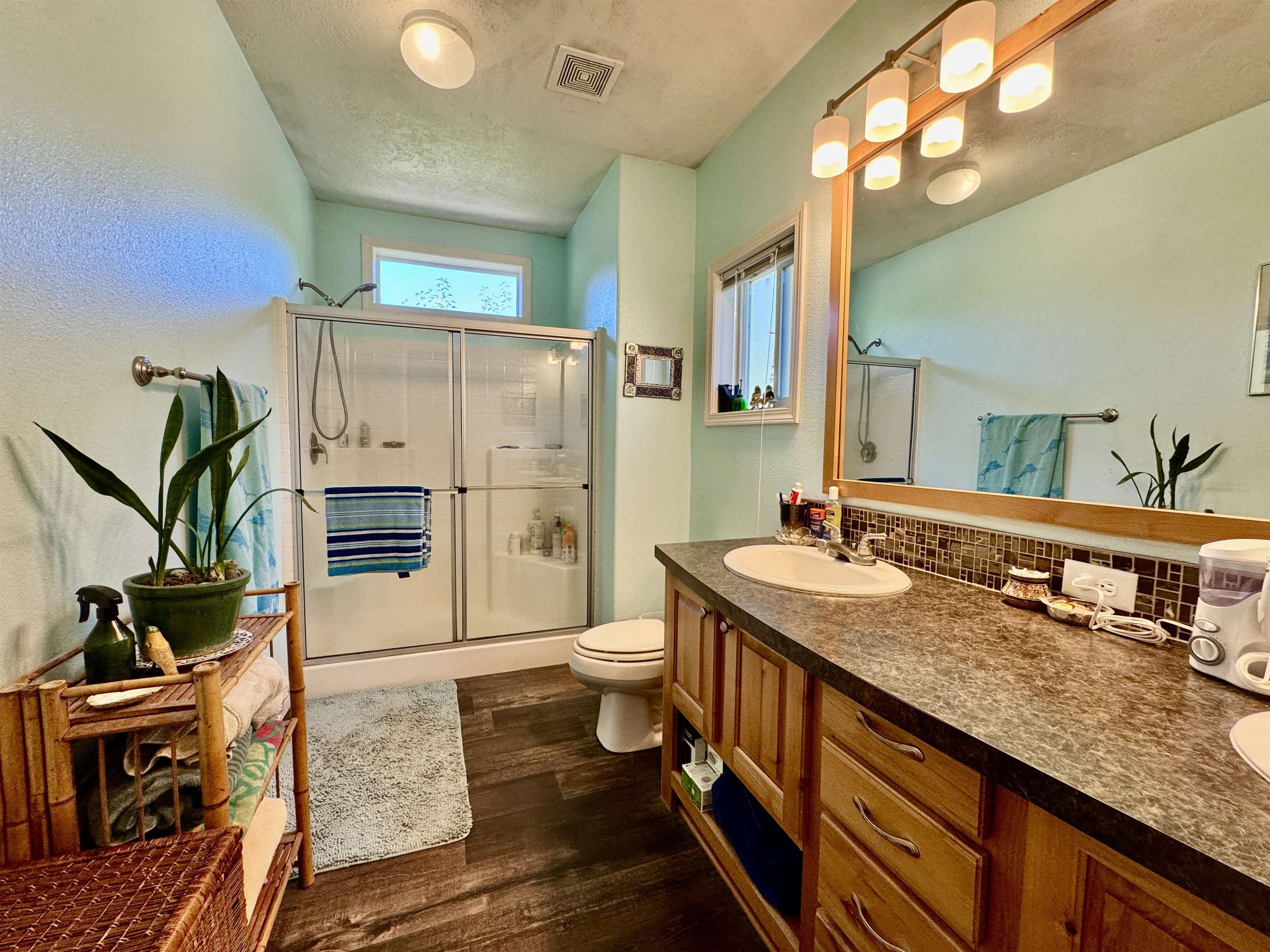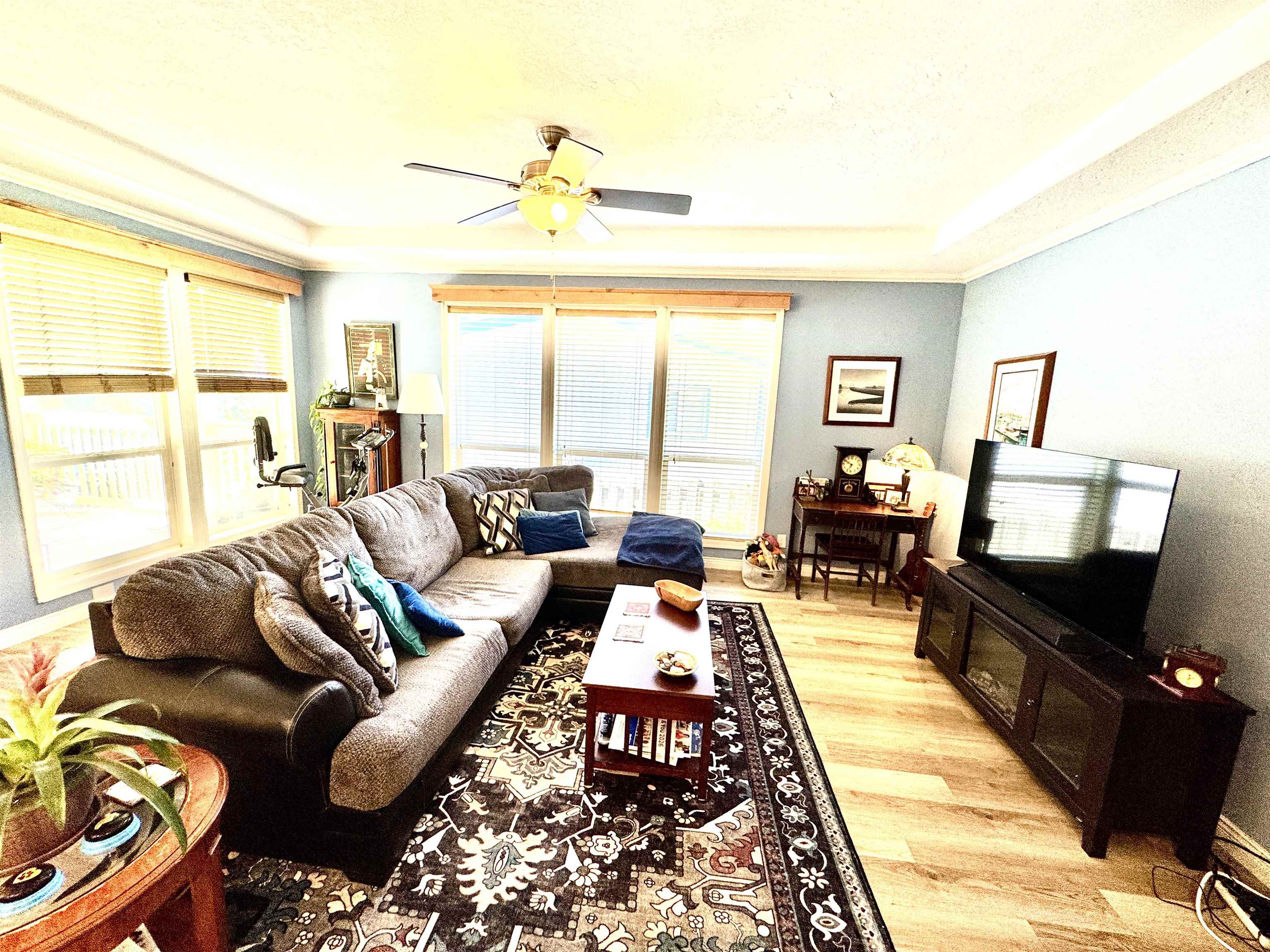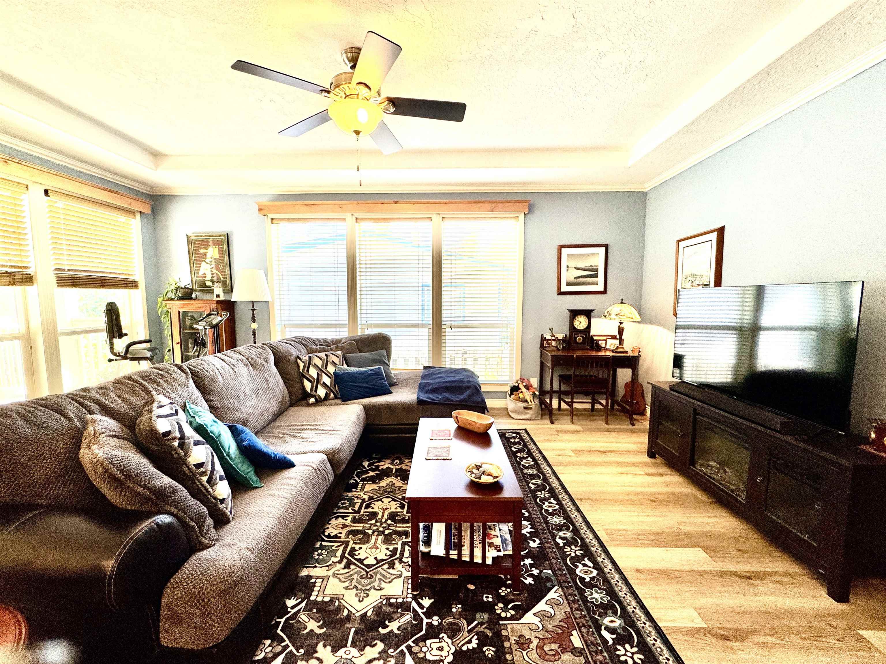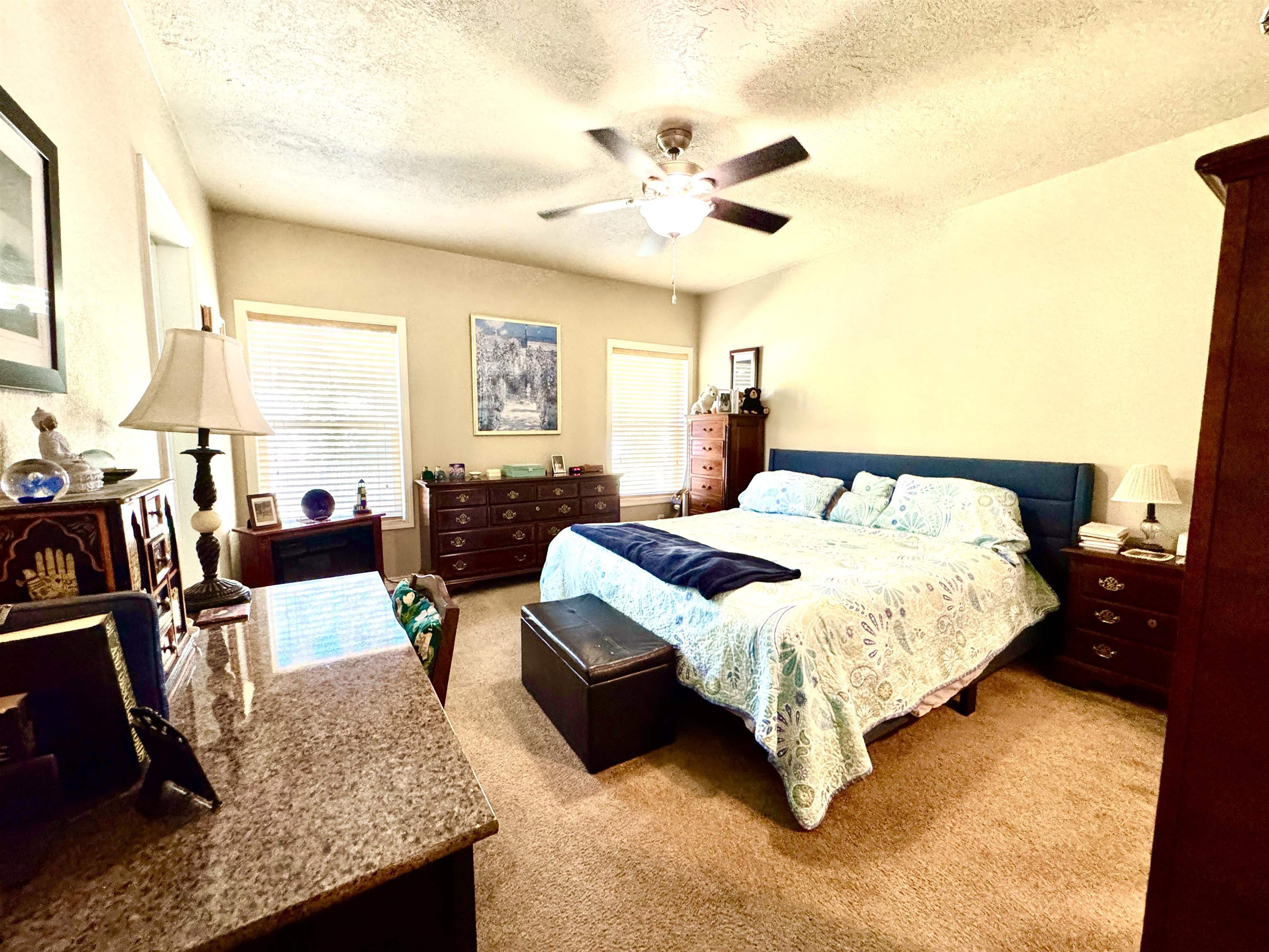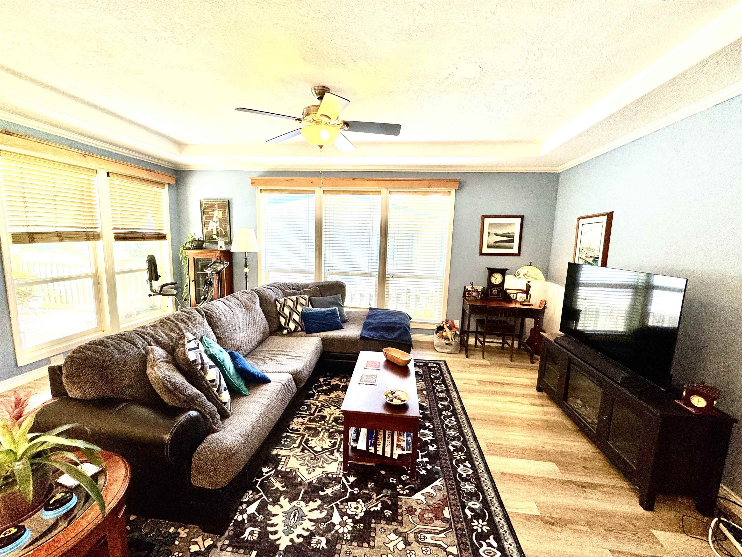 Bath-Master, Bay Window, Breakfast Bar, Cabinets In Utilities, Cable, Carpet, Din-Kit/Comb, Din-Living/Combo, Extra Storage, Fan-Ceiling, Floors-Laminate, Lighting-Recess, Smoke Detector, Utility Room, Walk-in Shower, Windows-Double
