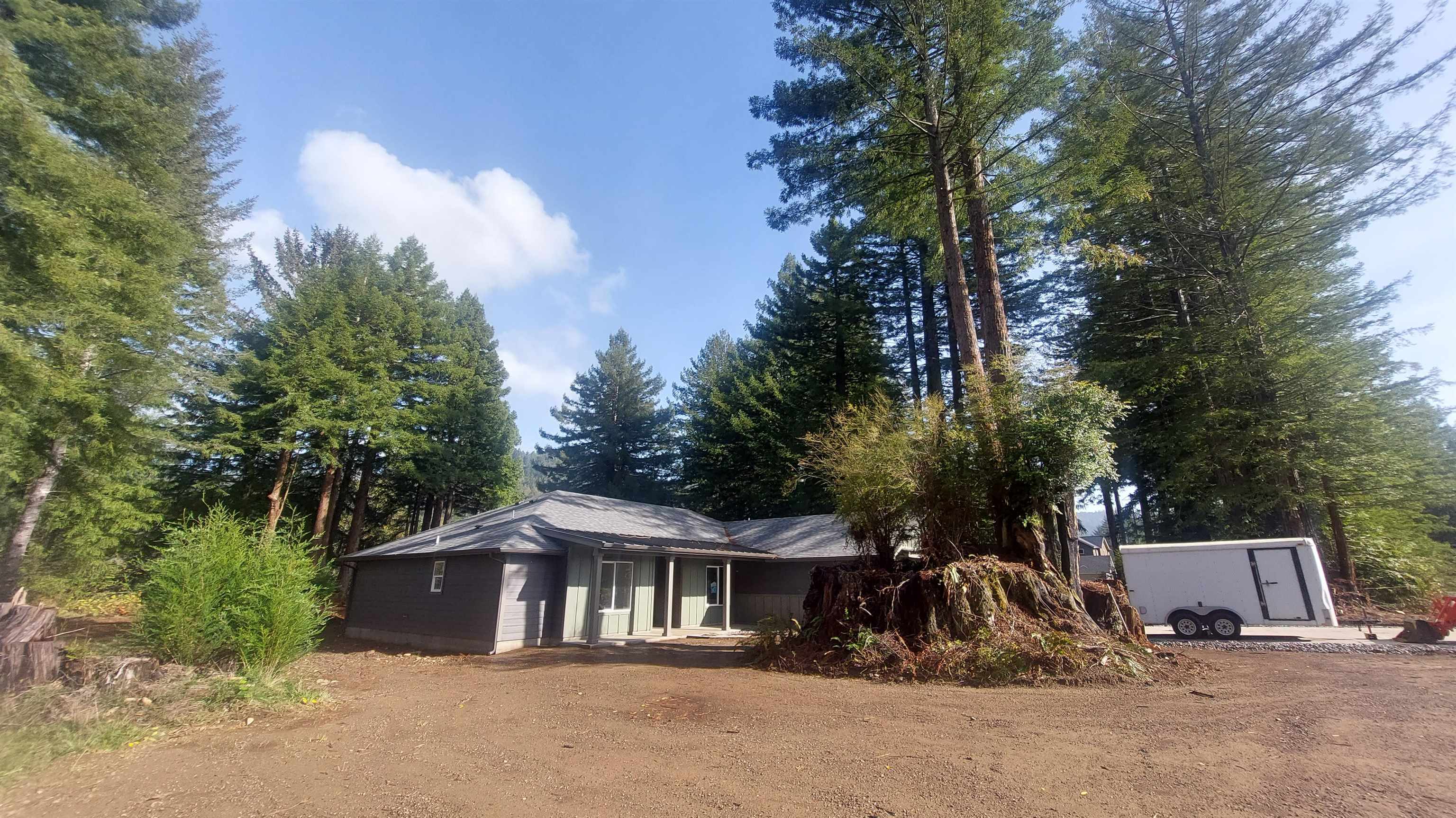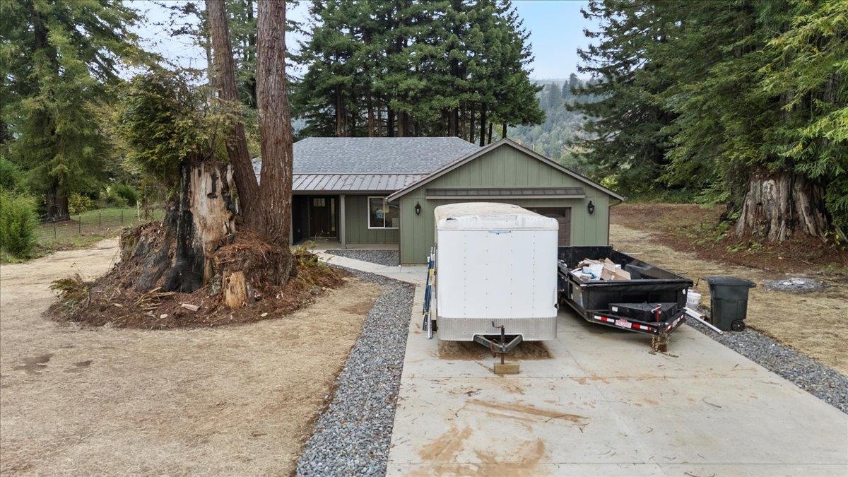 Wrapped with the promise of quality craftsmanship and luxurious materials, this brand-new custom home stands ready to welcome its first family—perhaps just in time to hang stockings and tie a big red bow around a dream come true. Situated on a beautiful Redwood studded .56 ac lot, in a well-kept neighborhood out of town and just a short jaunt to the pristine Smith River. In front of the home stand a magnificent never-dying Redwood stump that is sure to become a centerpiece for feature land scaping plans. A welcoming and functional covered front porch framed by a metal roof greets friends and family with room to sit a spell. Step through the front door under vaulted ceilings with elaborate windows that pull the exterior green scape right into the home from your first glance. The glass doors along the living room open out to the back patio. Ready for summer BBQ’s and stories around the fire pit. This home sits just above a rustic pasture that leads out to the river at the base of a forested picturesque mountain loaded with lush Redwood trees. Modern open floor plan in the living spaces with a formal dining room that could easily serve as a 4th bedroom. The well-equipped kitchen is adorned with luxury granite counter tops, a deep undermount sink, pull out cabinets in the pantry, an oversized bank of drawers, seeded glass accents in the upper cabinets, a wrap-around breakfast bar sure to invite conversation, while the cook explores culinary adventures on the gas range. The primary bedroom is masterfully tucked to one side of the home offering a quite sanctuary, featuring a large walk-in closet and bathroom with custom tile walk-in shower and double sinks. This home boasts an impressive amount of storage throughout the entire home that is sure to keep you organized in a home where everything has a place. This is not just a house, it’s the start of a story, beautifully crafted home ready for warm laughter, holiday gatherings with family and friends, the simple rhythms of life to fill its walls. Tie the ribbon and step inside, your new home awaits.