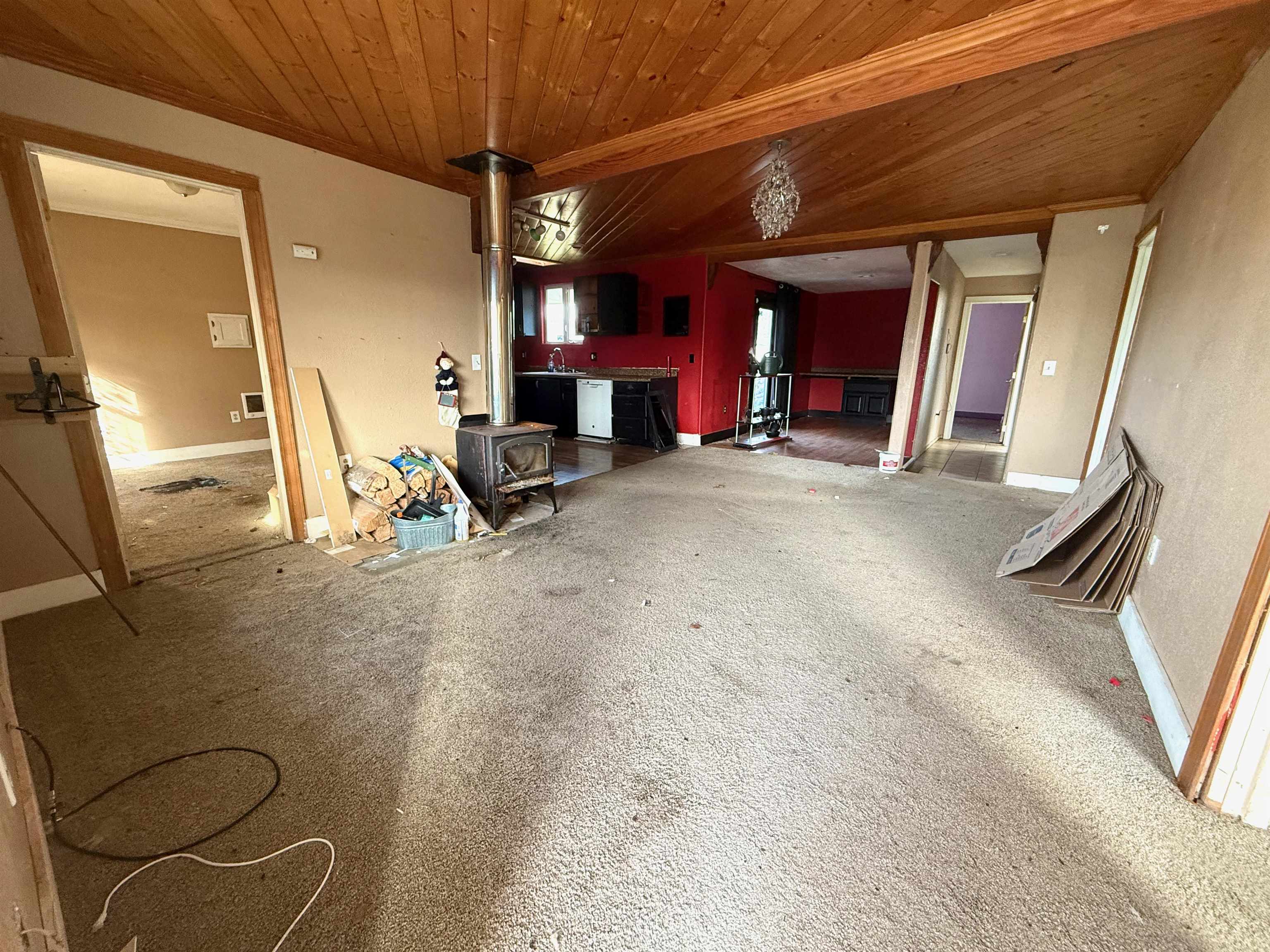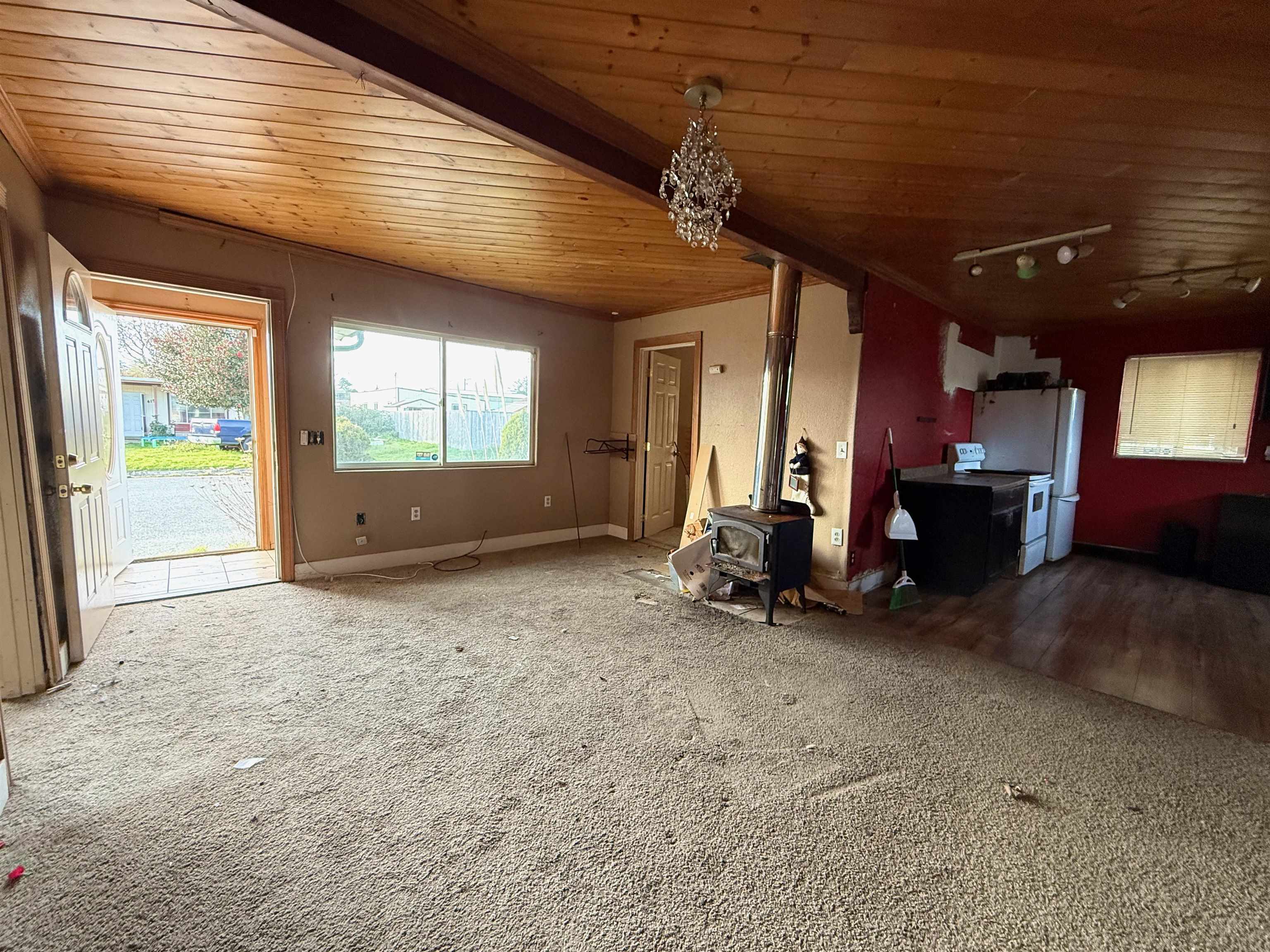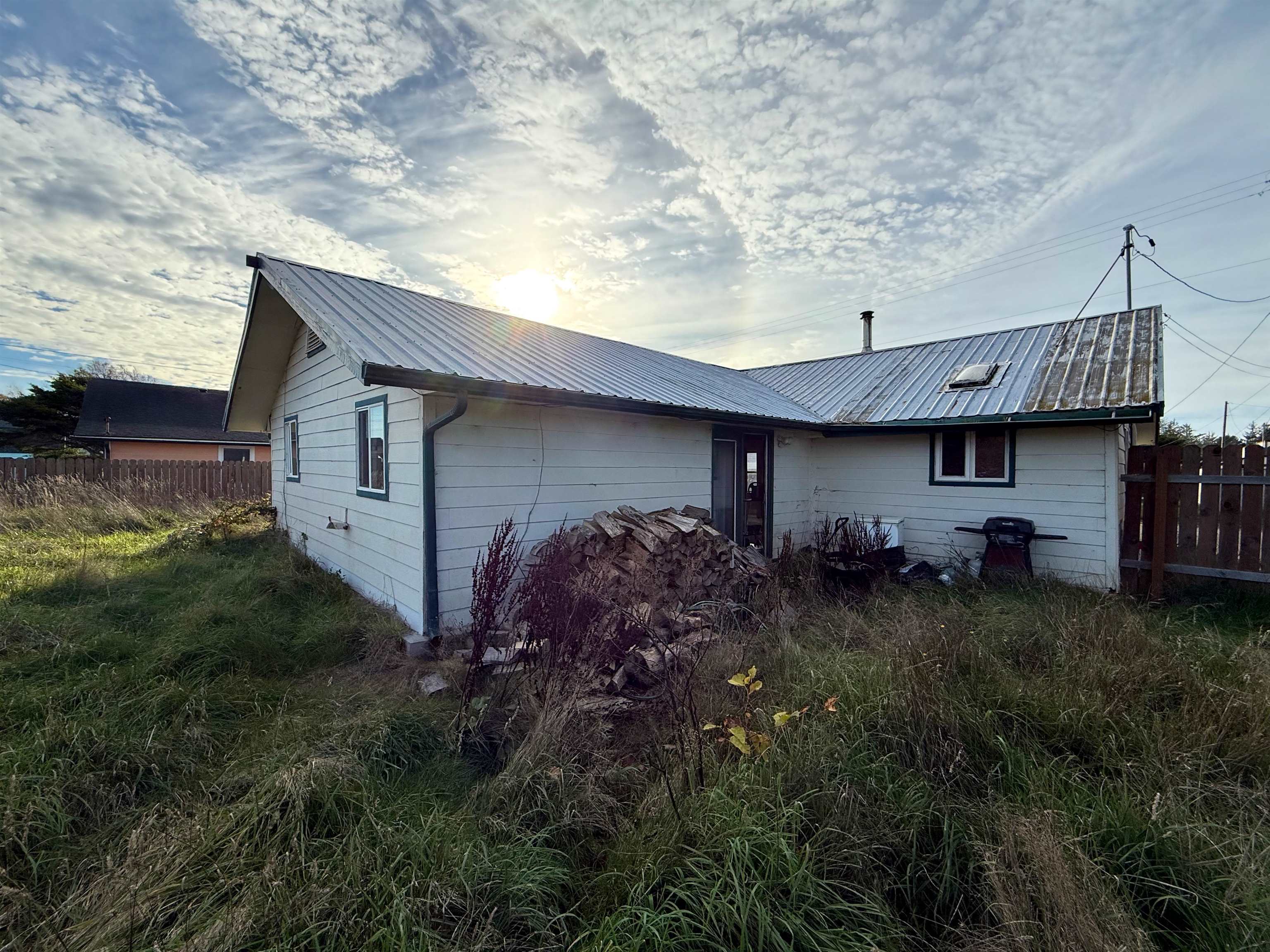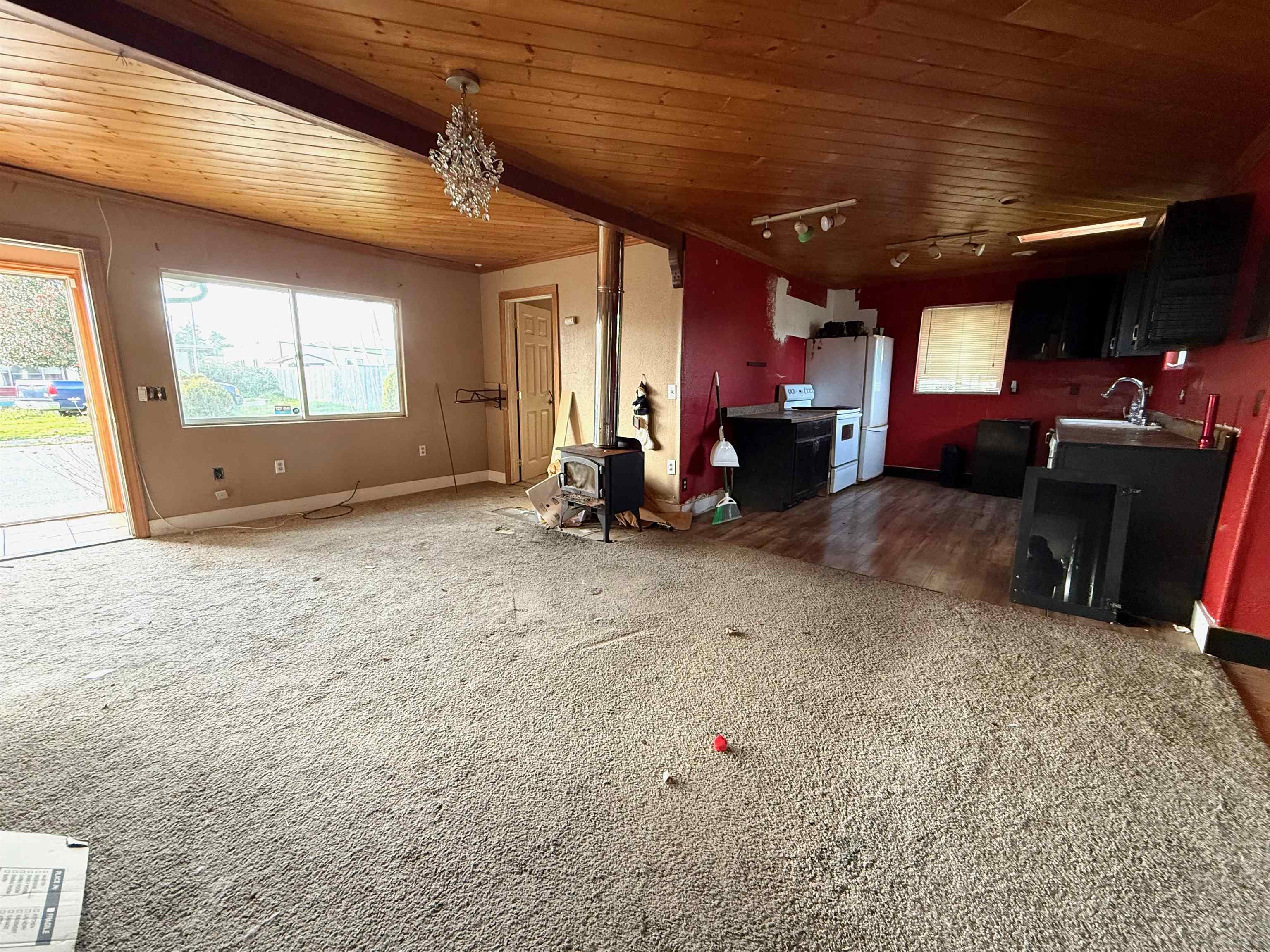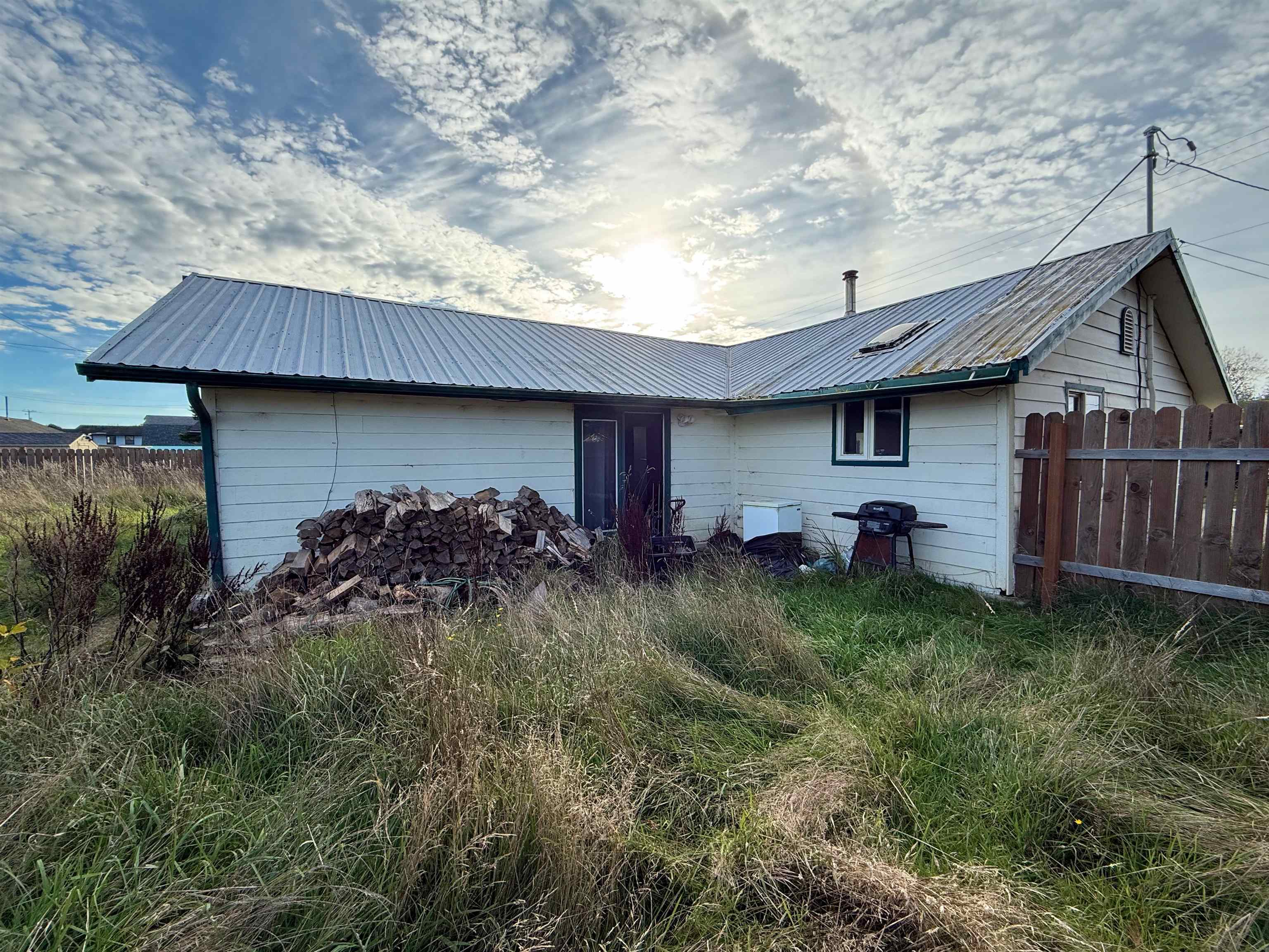 A fantastic fixer-upper opportunity for investors! Built in 1918, this 4-bedroom, 2-bath home features an open dining, living, and kitchen layout, highlighted by a cozy wood stove and warm wood plank ceiling in the living room. The spacious primary bedroom includes its own en-suite bathroom with heated floors. The large backyard is fully fenced with garden beds and a storage shed. This property is full of character and ready for someone to give it the remodel love it deserves!