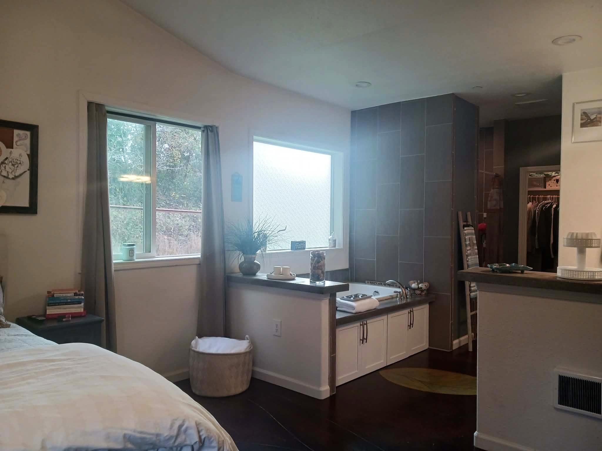 Newer 3 bedroom 2.5 bathroom. This house has two master suites with high end bathrooms and walk in closets. Fenced with a security gate, This home is heated with a ductless heat pump and a woodstove. also features a tankless water heater and a hot or cold pot filler faucet above the stove.