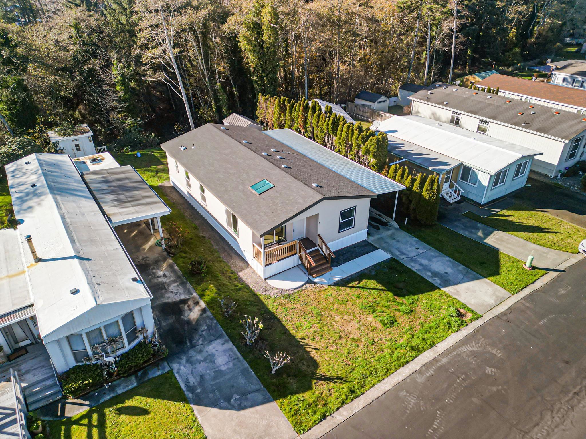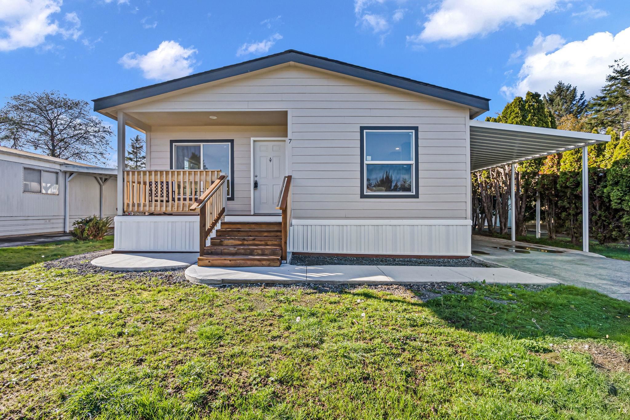 Brand-new manufactured home located in Space #7 at the highly sought-after Crescent Senior Mobile Home Estates, 650 E. Washington Blvd., Crescent City, CA. This beautifully situated home is in one of the cleanest, safest, and most well-maintained mobile home parks in the area. Ideally located next to Sutter Coast Hospital and within walking distance to Walmart and Ace Hardware, with downtown Crescent City just minutes away. This home has never been occupied and was custom ordered with numerous upgrades and special features throughout. Offering approximately 1,333 sq. ft., the home includes 3 bedrooms and 2 bathrooms. The spacious kitchen features solid-surface countertops, attractive cabinetry, and stainless steel appliances, including a refrigerator, range/oven, microwave, dishwasher, and garbage disposal. Laminate flooring runs throughout the home, complemented by vinyl windows and abundant natural light. The covered front entry includes a sit-in porch, with two additional exterior entrances—one off the primary bedroom and another through the laundry room leading to the carport. The primary bedroom is generously sized with a walk-in closet, and the primary bathroom features a walk-in shower. Two additional bedrooms offer flexibility for guests, a den, office, or hobby room. A skylight and large windows fill the home with natural sunlight. The oversized indoor laundry room includes convenient cabinetry. Outside, enjoy a brand-new attached carport with space for two vehicles, along with a concrete driveway and walkway. The low-maintenance yard is ready for your personalized landscaping. A brand-new detached storage or workshop building is located behind the home. This is a 55+ senior community, and buyer must obtain park approval. Monthly space rent: $610, which includes water, sewer, trash service, and security. The park features paved roadways, 24-hour security cameras, and a quiet, peaceful atmosphere surrounded by friendly neighbors and well-kept homes. Easy to show almost anytime.