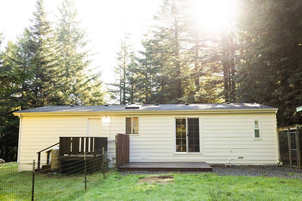 Build some equity with a great home in the Redwood School District! Welcome to this beautifully maintained manufactured home nestled in a picturesque lot in the desirable Redwood Elementary School District! Appraised for $350,000 in "As is" condition, the property features a 1.01 acre lot with plenty of room to enjoy the outdoors. Enjoy your peaceful redwood setting from your back yard. Feel the warmth of the morning sunrise from the front porch for peaceful coffee morning moments. This inviting 3-Bedroom, 2-Bathroom home features a split-floor plan with the master suite located on one side of this home and the other two bedrooms located on the other side of the home. Enjoy the added flexibility of electric heat or pellet stove to stay warm and cozy. Recent updates include a new front door, sliding patio door, all new light fixtures, electrical outlets, partial roof replacement, and fresh paint inside and out. Both bathrooms have new toilets, tubs, shower heads, countertop laminate covers and floors. The two smaller bedrooms have brand new carpet and windows. Outdoors, a storage shed and dog kennel come with the house as part of this offering. Take a break and drop a line in the nearby Smith River or catch the beautiful sunsets at the beach with ease. From its central, yet private location, you can drive to the ocean beaches in less than 10 minutes or to the Smith River in less than 5 minutes. For buyers seeking affordable homeownership in a serene setting, this property checks all the right boxes. The combination of comfortable living space and natural beauty creates an opportunity that doesn't come along every day at this price. All updates have been completed by the book with recent permits. Ask your agent for the pest and dry rot, well and septic, and appraisal reports. Schedule your private showing today and see why this could be the home you've been searching for!