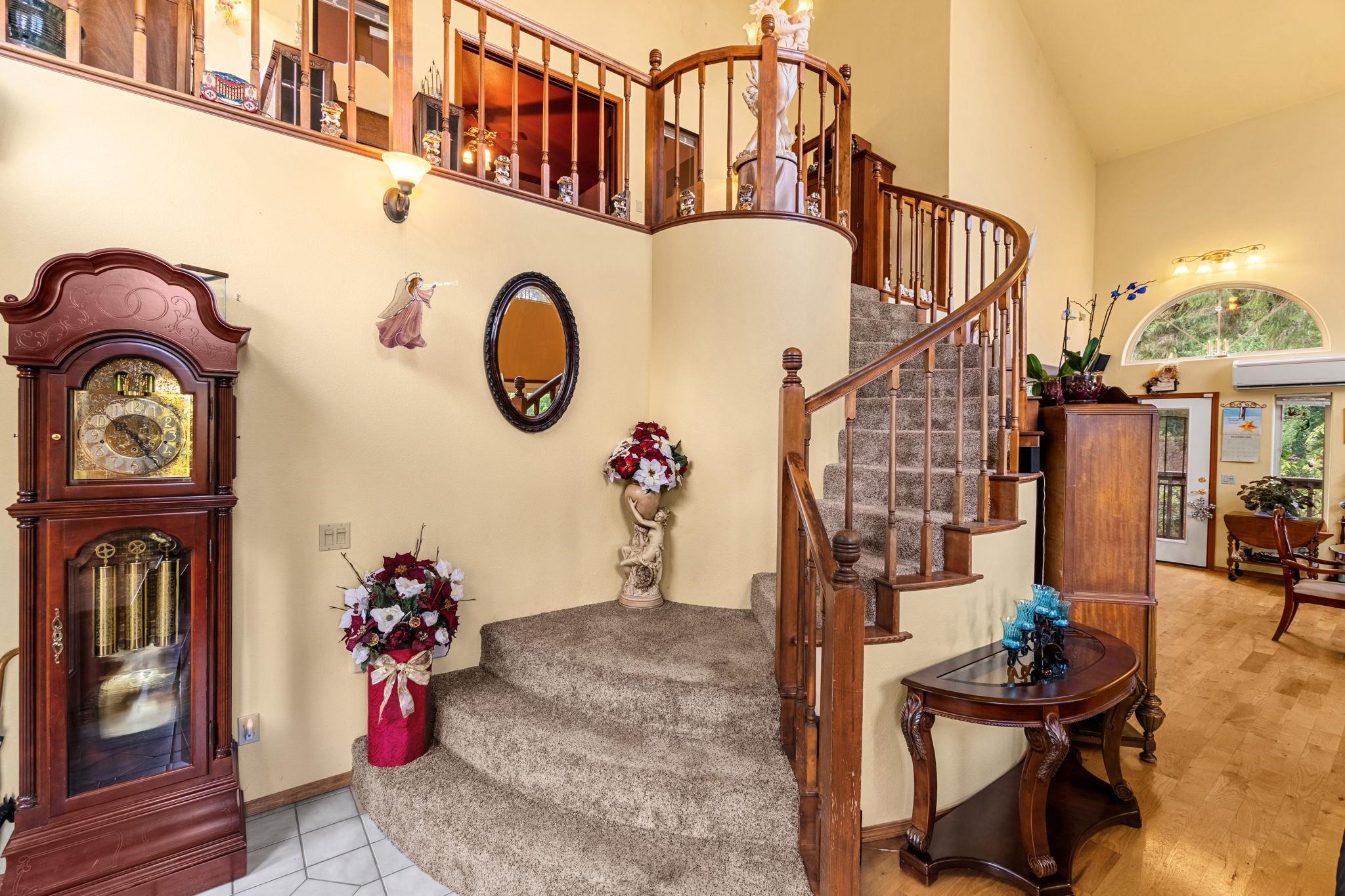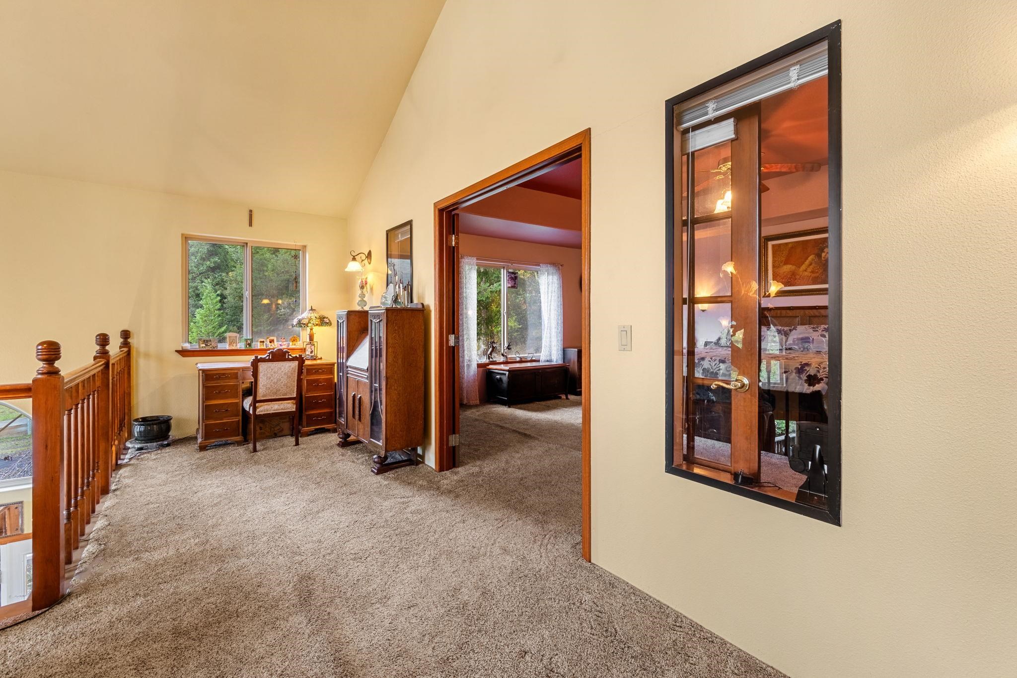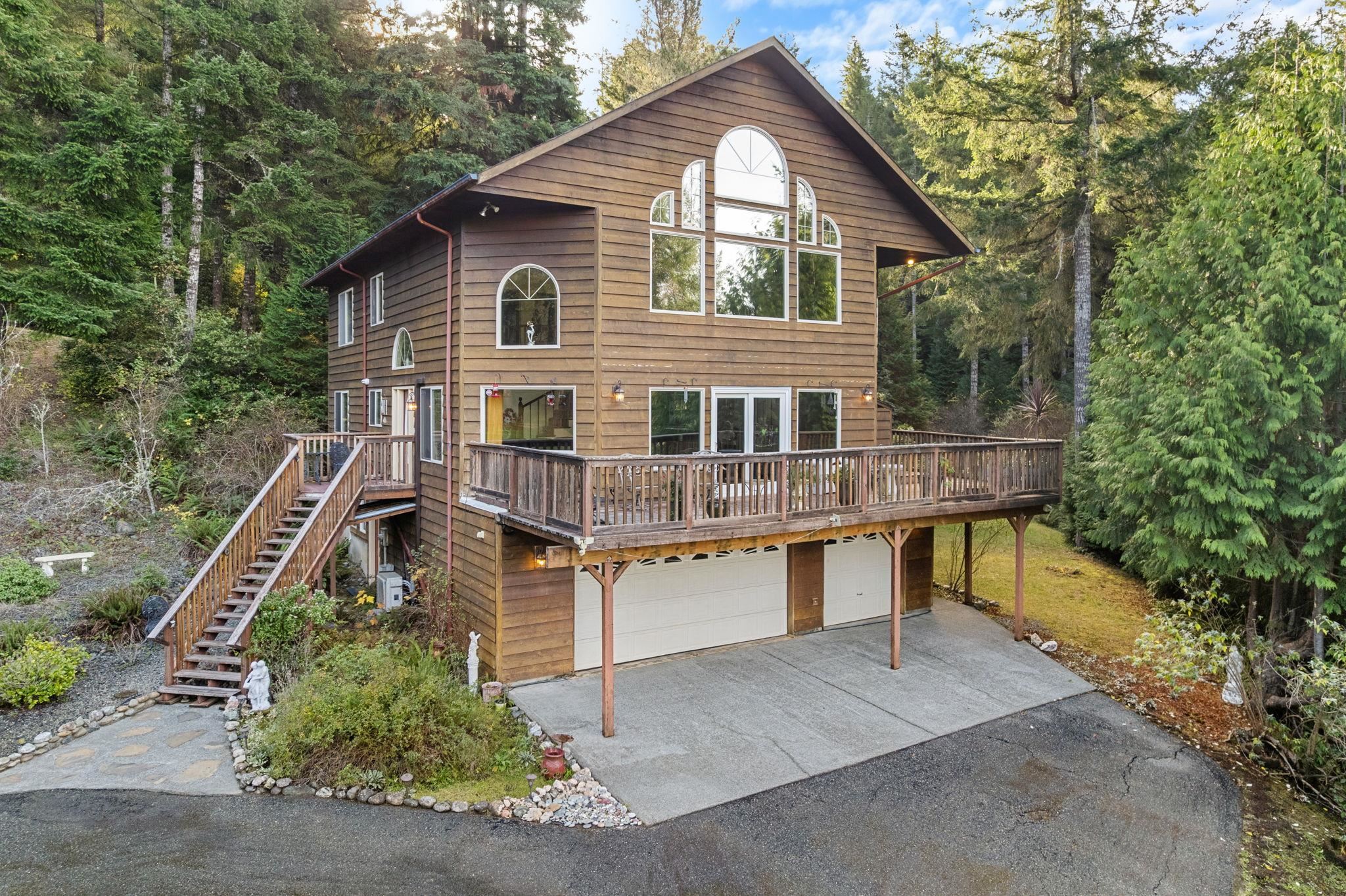 Welcome home to your private retreat. Properties like this make you never want to leave. Set on 4 serene, wooded acres, this inviting 3-bedroom, 3-bath home offers the perfect blend of comfort, space, and natural beauty. Step inside and take in the soaring cathedral ceilings and the stunning floor-to-ceiling picture windows that frame the peaceful forest surroundings. The living room features a beautiful rock fireplace and flows effortlessly into a spacious, welcoming kitchen—ideal for gatherings and everyday living. Beautiful oak floors and a wrap-around staircase greet you as you enter, leading you to the impressive primary suite upstairs. At the top of the stairs, a cozy lookout offers views of both the outdoors and the living area below. French doors open to the expansive primary suite, which encompasses the entire top floor. Here you’ll find a generous bathroom with double sinks, a walk-in shower, and a relaxing jetted soaking tub, along with a massive walk-in closet. The second floor offers a large bathroom with a charming claw-foot soaking tub, a comfortable guest bedroom, and a spacious laundry room. The lower level features a junior suite complete with its own bathroom and a sitting area that could easily serve as an office. Outside, the amenities are just as impressive. In addition to the attached 3-car garage, there is a 1,200 sq. ft. shop—perfect for projects, storage, or hobbies. RV hookups are located next to the shop, with additional RV hookups near the home. A broad wrap-around balcony provides plenty of outdoor living space to relax and take in the tranquil setting. Located on the peaceful outskirts of Hiouchi, this home offers privacy, comfort, and the beauty of nature—all just minutes from town.