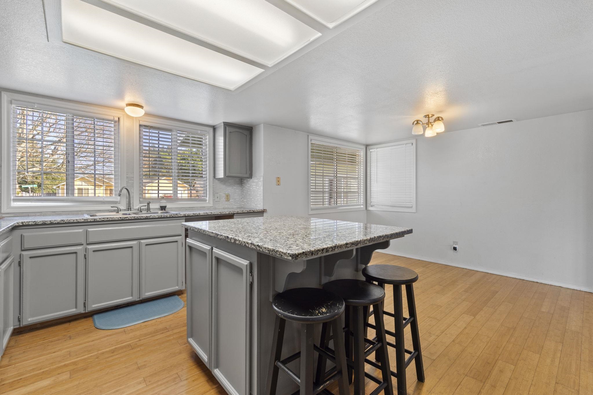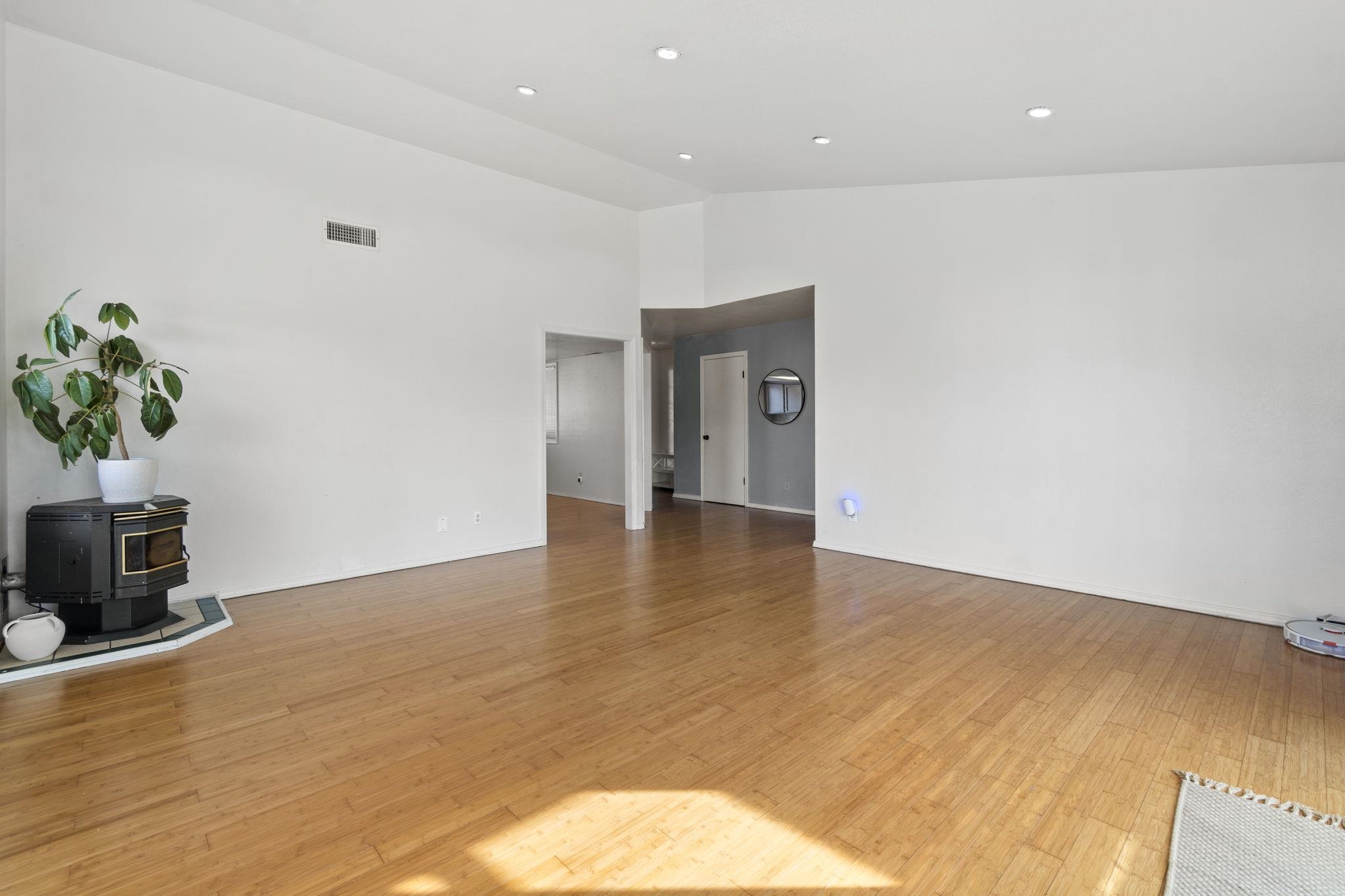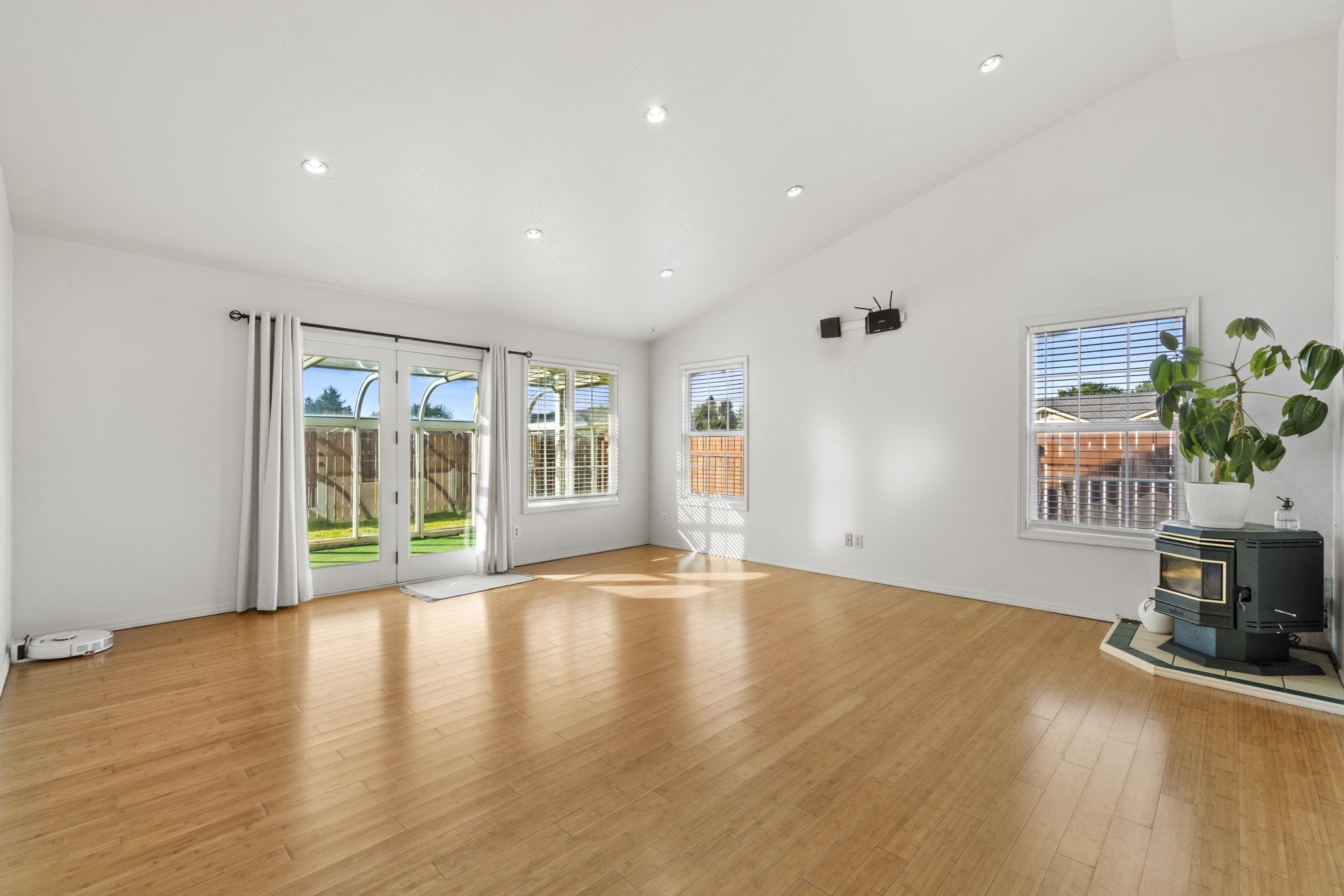 Charming, single-level home with a bright, open feel and thoughtful layout! This 3-bedroom, 2 bathroom home offers a spacious and functional floor plan designed for comfortable everyday living and easy entertaining. Step inside to a light-filled living room featuring vaulted ceilings, recessed lighting, and beautiful wood flooring. Large windows and glass doors invite in natural light and provide seamless access to the backyard, creating a warm and welcoming atmosphere. A cozy freestanding stove adds charm and character to the main living space. Make your way into the kitchen which flows nicely into the dining area, making gatherings effortless. Kitchen features beautiful granite countertops and an abundance of storage. A generous primary suite offers plenty of space to unwind complete with two closets and a en-suite bathroom. Enjoy outdoor living in the fully fenced backyard with room to garden, play, or relax. The bonus sunroom extends your usable space and is perfect for morning coffee or evening wind-downs. The attached two-car garage and dedicated laundry area add everyday practicality. With its inviting curb appeal, comfortable layout, and versatile living spaces, this home is ready for its next chapter. Don’t miss the opportunity to make it yours!