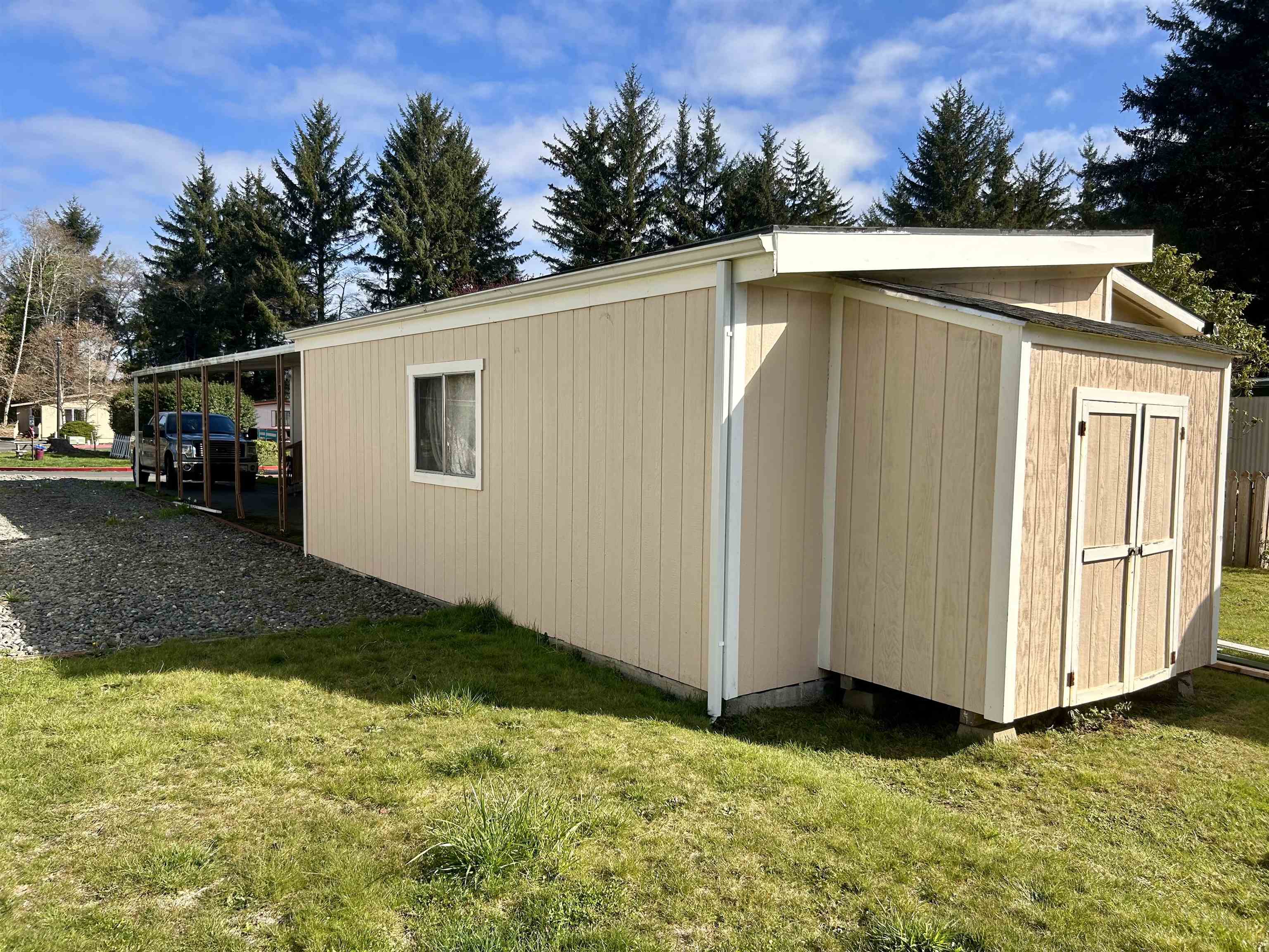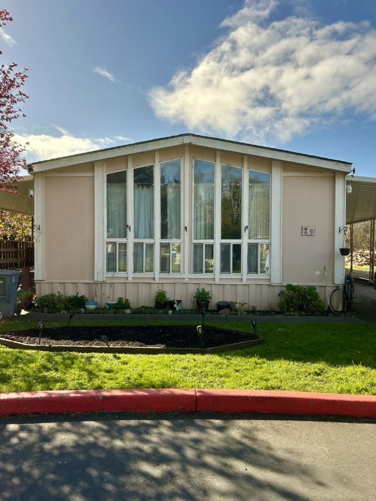 Spacious 1,440 sq ft manufactured home located in Pacific Terrace family park, offering comfortable living and great features throughout. The home includes a primary bedroom with a relaxing soaking tub and walk shower in the master bath, providing a private retreat at the end of the day. A wheelchair-accessible ramp offers convenient entry, adding to the home's accessibility. There is an attached one car garage, storage shed, and carport. Outside, you'll find a unique custom smokehouse. Appliances are included. Roof was replaced approximately 8 years ago. With ample space and thoughtful features, this property offers both comfort and functionality in a welcoming community. Sale subject to buyer approval by park management. Space rent is $631, no utilities included.