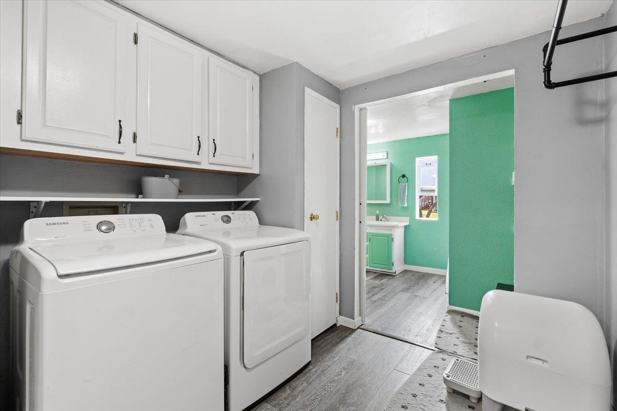 Bath-Master, Breakfast Bar, Cabinets In Garage, Cabinets In Utilities, Din-Kit/Comb, Din-Living/Combo, Floors-Laminate, Garage Door Opener, Smoke Detector, Utility Room, Walk-in Closets, Windows-Double