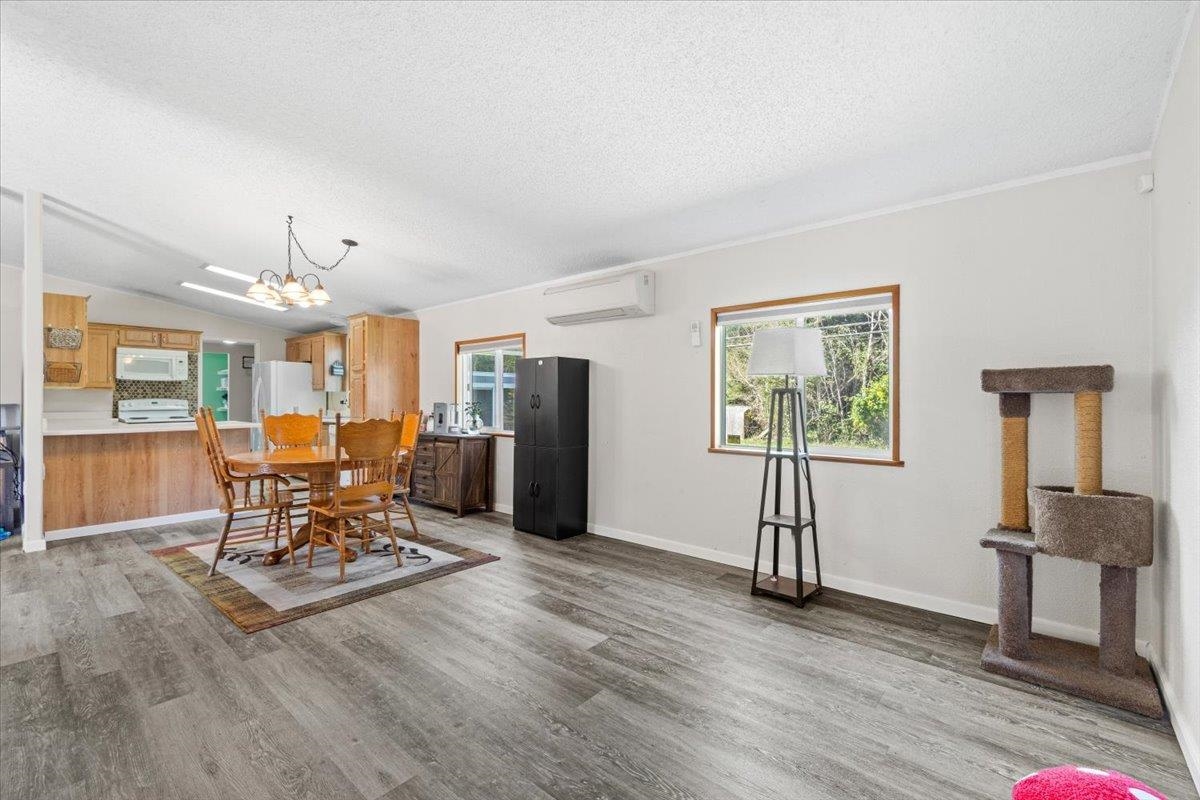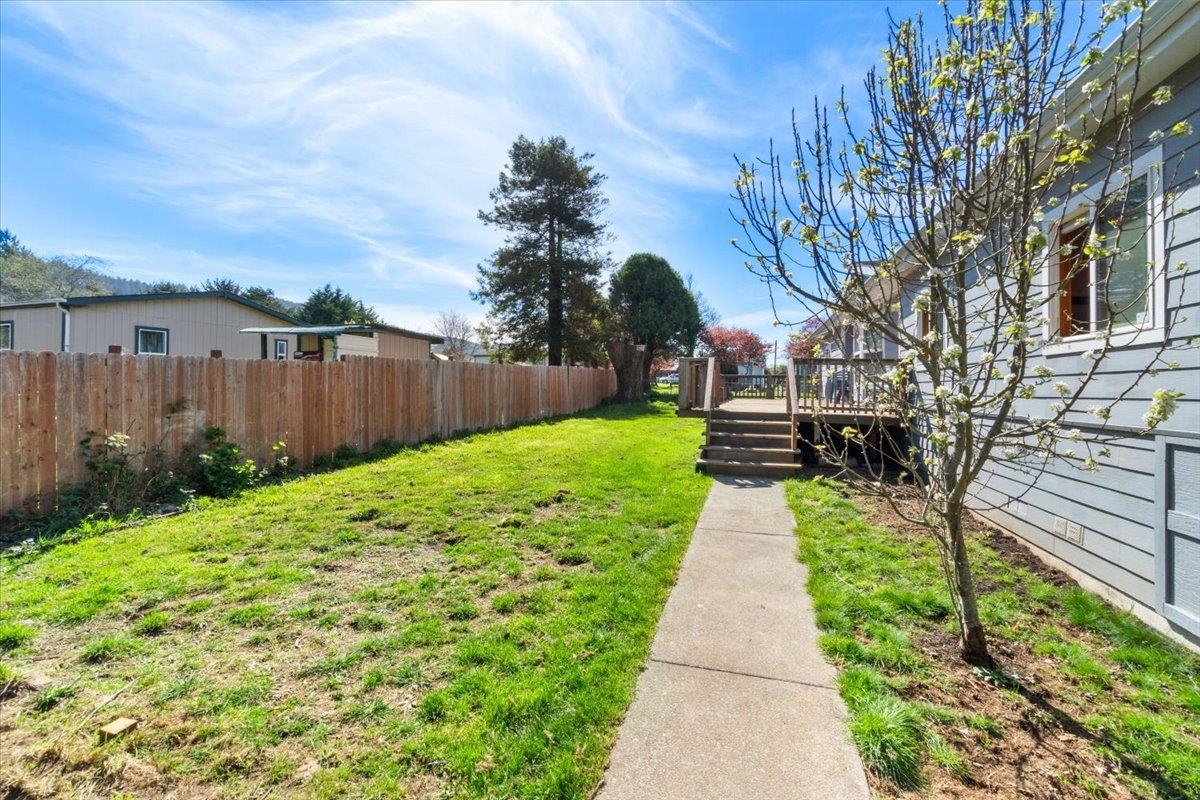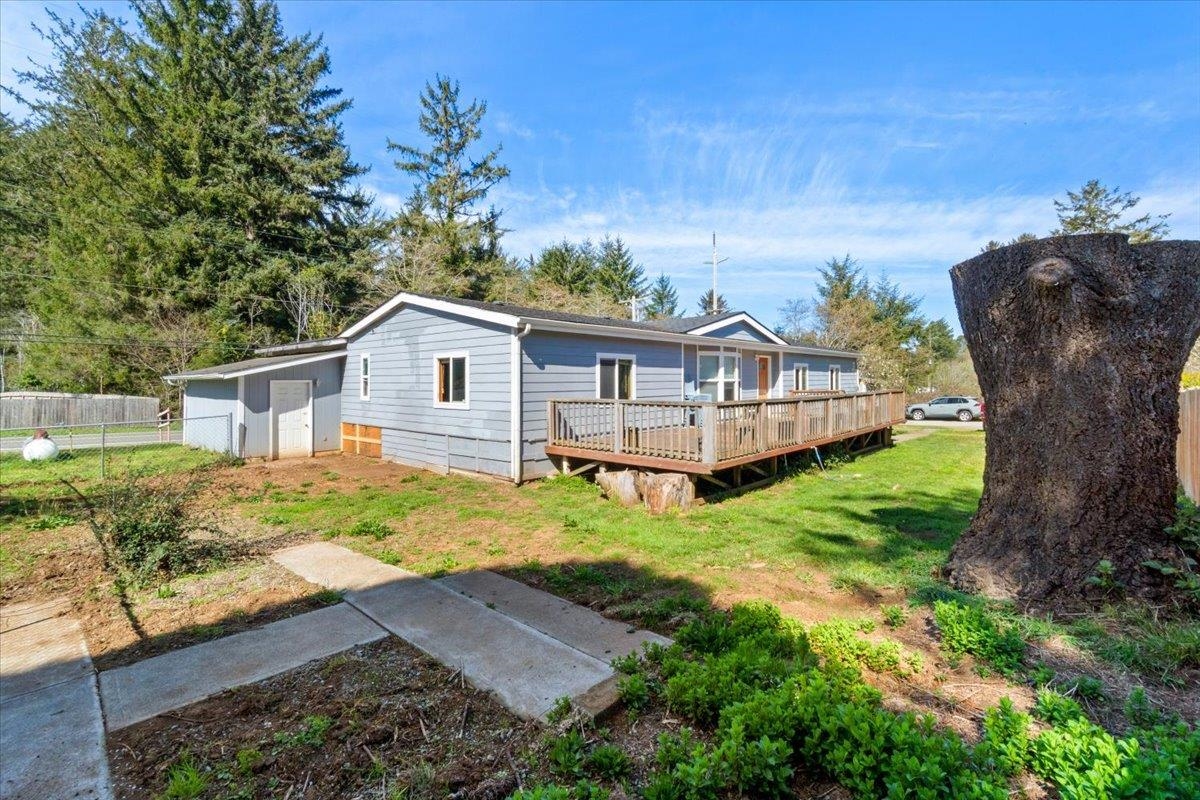 Large home featuring 4 bedrooms, 2 baths and a corner lot with .23 acres and mature fruit trees. Features include a large primary suite, 2-car garage with plenty of storage, new vinyl flooring, and a spacious laundry/utility room. The open-concept kitchen, dining, and living area offers vaulted ceilings and good natural light. Large lot with space to enjoy outdoors, conveniently located near trails and the ocean.